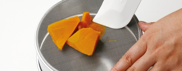 それが濾しです。これは簡単ですね。漉し器で裏ごしするんです。日本料理や和菓子の世界で見る濾し方です。
