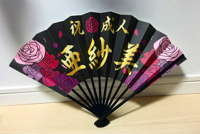 成人式の記念用としてオリジナル扇子をお作りさせていただきました。